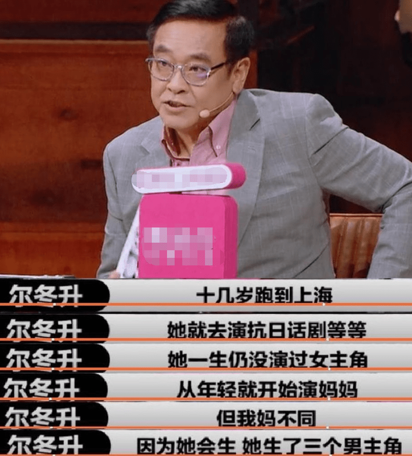 尔冬升导演觉得40+女演员演配角,演妈妈不要抱怨,应该摆正心态,因为他母亲红薇从20多岁开始演妈妈,一生都没有演过女主角,可依然是影坛的骄傲,而且她很会生,生了三个男主角(尔冬升,姜大卫,秦沛三兄弟是香港影坛公认的最佳男主角)。