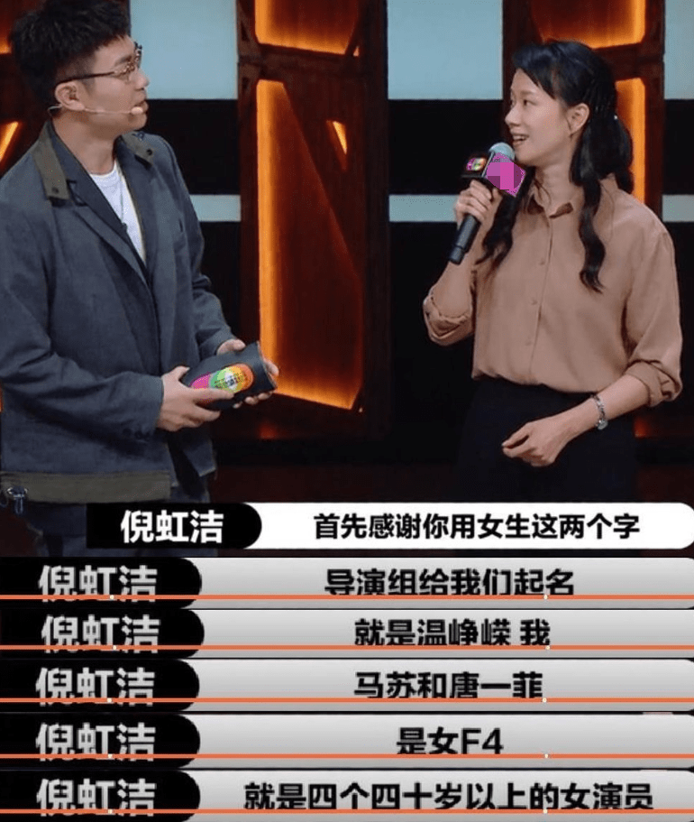 演了18年戏的倪虹洁的市场初评级为B级,位列三个级别最低,和马苏,唐一菲,温峥嵘一起被导演组调侃为“女F4”,即4位40岁以上的女星。