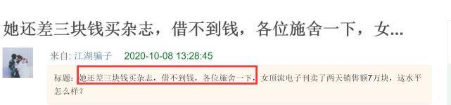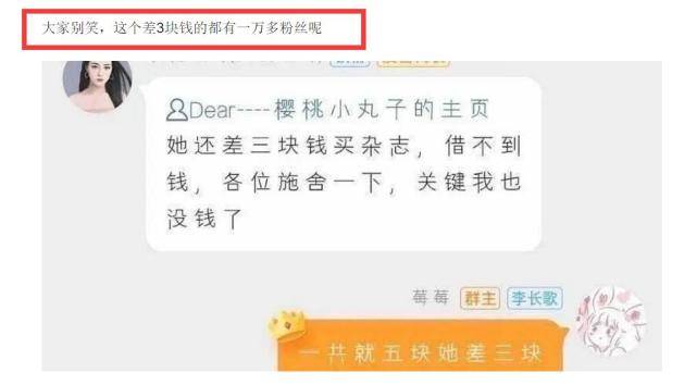 要知道,这本电子刊的售价为5元,与实体杂志相比再便宜不过了,相信普通人都能秒下单。就在这时,有迪丽热巴粉丝公然乞求其他网友施舍3元,好让她凑齐5元为迪丽热巴氪金:“还差3元买杂志,借不到钱了,各位施舍一下”,这番话不禁让人感觉心酸又可笑。有网友提醒道,这位差3元就能购买杂志的网友在全网坐拥1万粉丝,也算是一名小有名气的博主了。为何知名度不算小的粉丝连3元都拿不出?这让网友一头雾水。