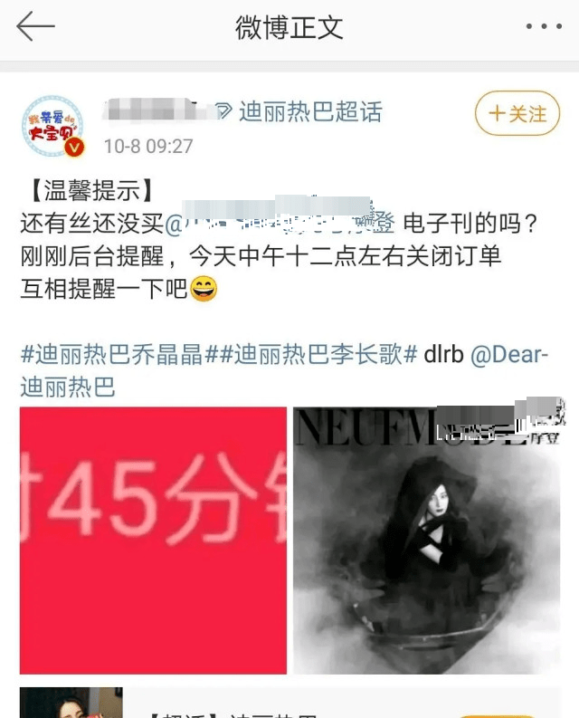 杂志封面的推出当然不只意在让粉丝欣赏迪丽热巴的绝佳美貌,让粉丝心甘情愿为其付费其实也是资方的一大目的。10月8日,有迪丽热巴粉丝暖心提醒,这本杂志的电子刊将于当天中午12点关闭购买通道,含蓄催促还没下单的粉丝赶紧购买。