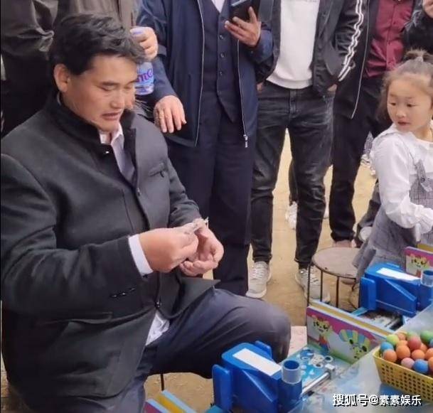 大衣哥走出家门与朱楼村的村民们笑着聊天,当喜公公的他自然是非常的开心,走到一个小孩子玩乐的场地之后,大衣哥主动掏钱请大家玩这些玩具。