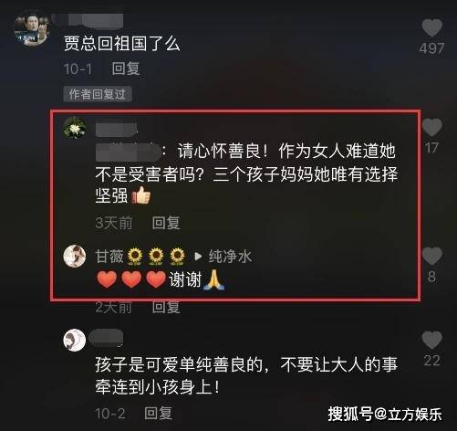 由于甘薇被股民不断追问贾跃亭新动向,她自己也不堪其扰,开始拒绝回答。不过看到有网友替她说话,作为三孩妈及受害者,甘薇也不忘表示感谢。毕竟这三年的人情冷暖只有她自己知晓,好不容易有人能理解她的处境,对她来说无疑是庆幸的。