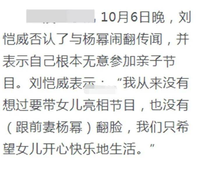 随后,刘恺威本人联系到娱乐媒体,回应并解释到:自己只希望女儿健康成长,根本无意参与亲子节目,而他也未曾和杨幂闹翻。自从与杨幂离婚以来,刘恺威每每登榜热搜的理由,似乎都是因为女儿小糯米。