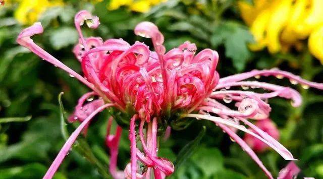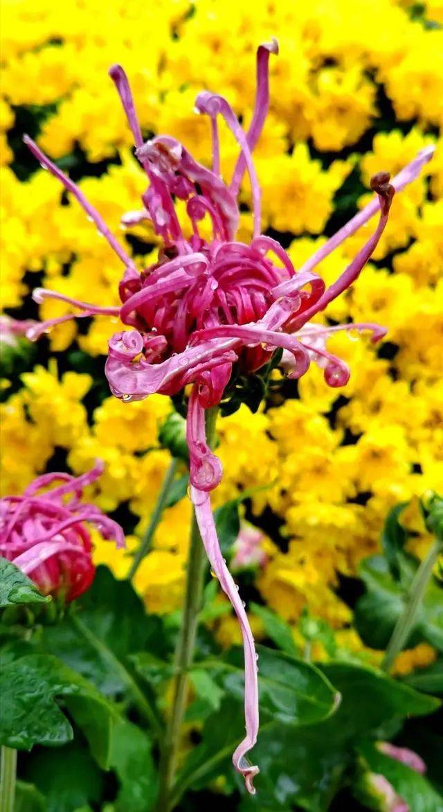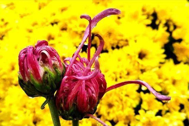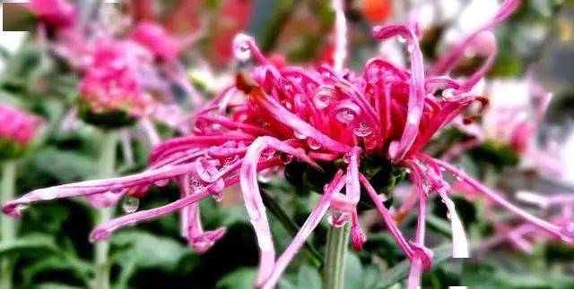 10月3日,在汝阳县付店镇火庙村,汝阳伏牛山首届高山菊花节现场看到雨中菊花更娇艳,晶莹剔透的水珠与娇艳的菊花交相辉映形成一道靓丽风景。用手机拍了一组图片和大家一起分享。