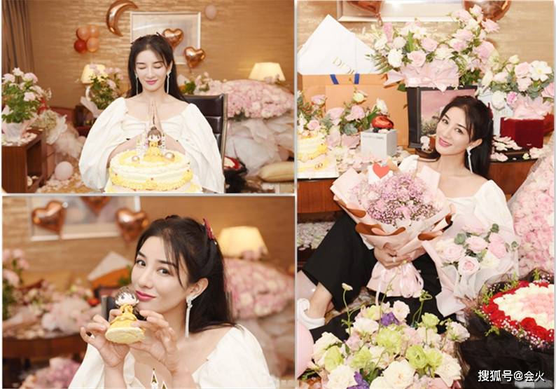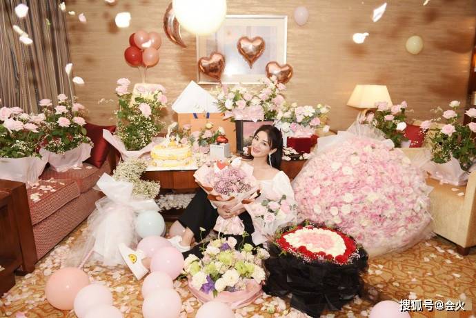 生日当天,她身穿一套简单的黑白配套装,手捧一束粉色玫瑰,坐在花海中间,皮肤白皙紧致,气质超凡出众。一件白色的宽袖口衬衣,领口低开,将她漂亮的锁骨和香肩完美地展现在了镜头面前。