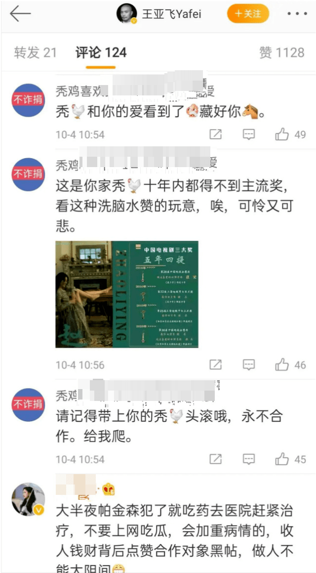 身为赵丽颖的造型师,不维持自己合作艺人的形象,偏偏点赞“力挺”杨幂,这让赵丽颖的粉丝强烈不满,随即对其展开了“围剿”。对于造型师这种“胳膊肘往外拐”的操作,赵丽颖粉丝吐槽起来也是毫不留情。“收人钱财背后点赞合作对象黑贴,做人不能太阴险”、“帕金森犯了就赶快吃药去医院”此类的评论一条接着一条,有部分过激粉丝的言论更是不堪入目。赵丽颖粉丝维护自家偶像的心思可以理解,但言语过激只会让网友觉得赵丽颖粉群没素质。