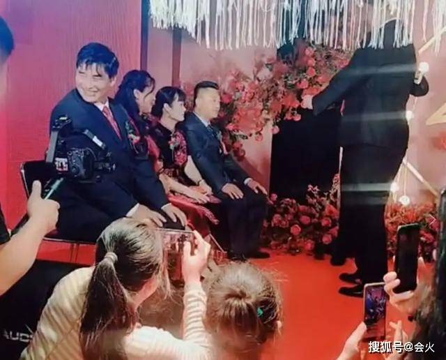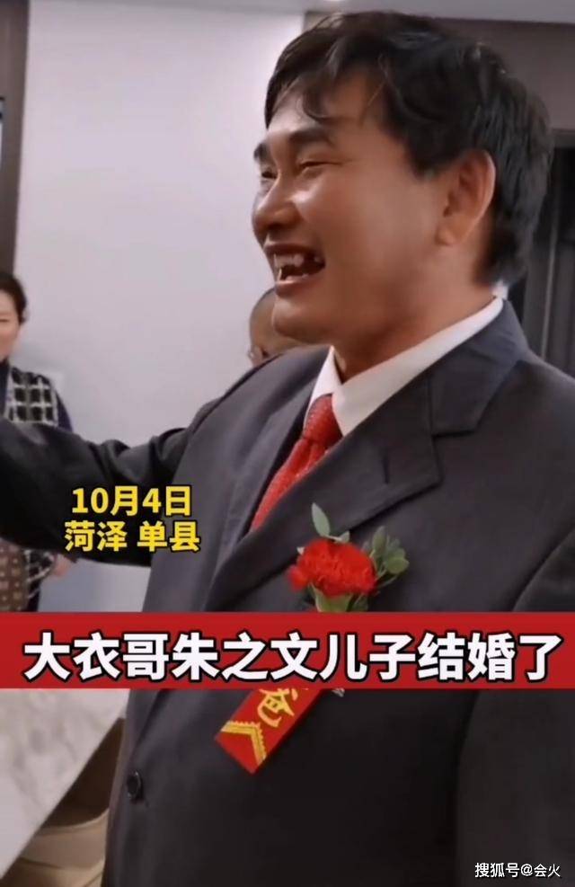 作为爸爸的大衣哥朱之文也打扮得非常正式,他穿着西装,胸前还别了一朵大红花,整个人容光焕发,看来儿子结婚朱之文十分开心。