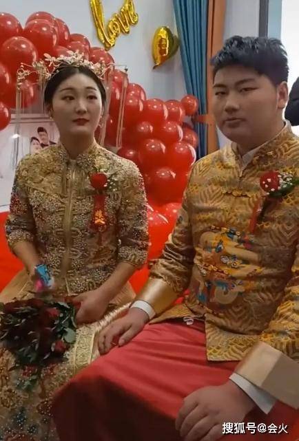 这一对新人身穿中式婚服,打扮得很精致。从身后布置可以感觉到,他们这次婚礼准备得非常用心,新房装修低调简约,在布置上也丝毫没有马虎。