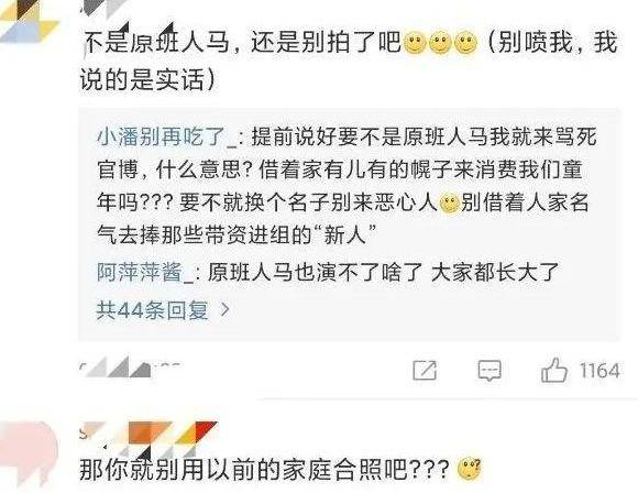 此消息一出,让不少《家有儿女》的忠实粉丝集体吐槽,“不是原班人马不看”、“还是别拍了,毁经典”。