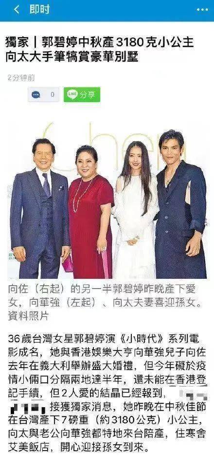 郭碧婷昨天被台媒爆料说已经生了,是一个女儿,向太一家子都赶到了台湾陪产等等等,虽然看起来好像是幸福美满,但是这条新闻真的满满都是槽点。