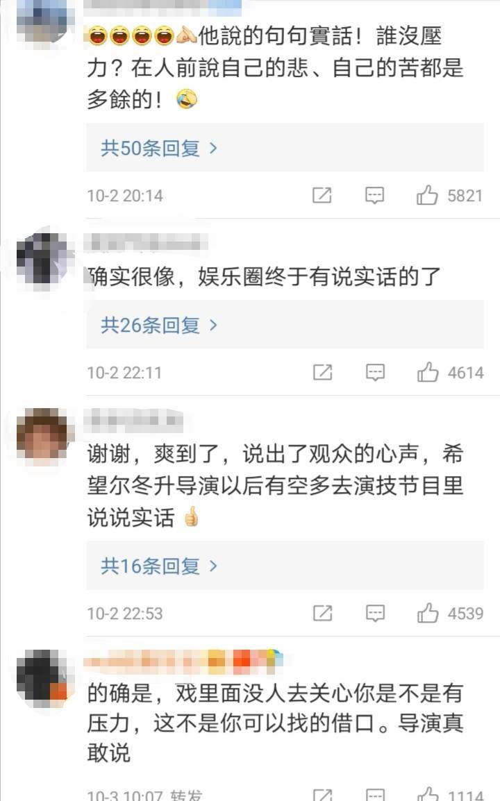 不过这样真实的一面展现了出来,加上尔冬升导演会给其他人一些中肯的建议,所以网友们对他也是格外认可和支持。而且就像尔导说的谁都有压力没必要拿这些事情出来卖惨,演技不行事实上就应该坦坦荡荡承认。张大大在节目上的回应也让不少网友对他开始吐槽“主持人都还没做好还想来演戏”。