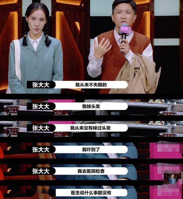 而尔导指出问题后张大大却没有主动解释自己演技问题,而是直接说“这两天我一直失眠,以前从不失眠,还一直掉头发,去医院做了检查”,从张大大的话可以看出,他在间接说明是因为这些天的不舒服而影响了自己的状态,而且说这两天一直失眠打感情牌,似乎是否认尔导对自己演技提出的质疑。