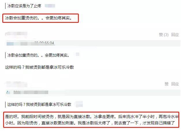 另外,关于烫伤如何安全处理,网友也有分享个人经验。王俊凯在节目中是用冷敷的方法解决,这种方法是错误的。冰敷不仅没有止疼作用,还会加重烫伤,让烫伤的位置变得更加疼痛。正确的方法应该是用流动水冲半小时,之后再用冷水泡半小时,希望节目组后期也可以跟大家分享一下生活小妙招,尤其是艺人的方法不当后能够紧急补救有用知识,以防误导观众学习效仿。