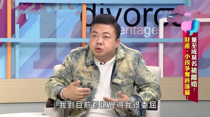 10月2日,据台湾媒体报道,董至成日前上节目分享这一段时间以来的心路历程,坦言“我非常荣幸今天能坐在这里,把我这一段很荒谬,而且我自己到现在还在找理由的离婚,我到目前都还觉得我很委屈”。