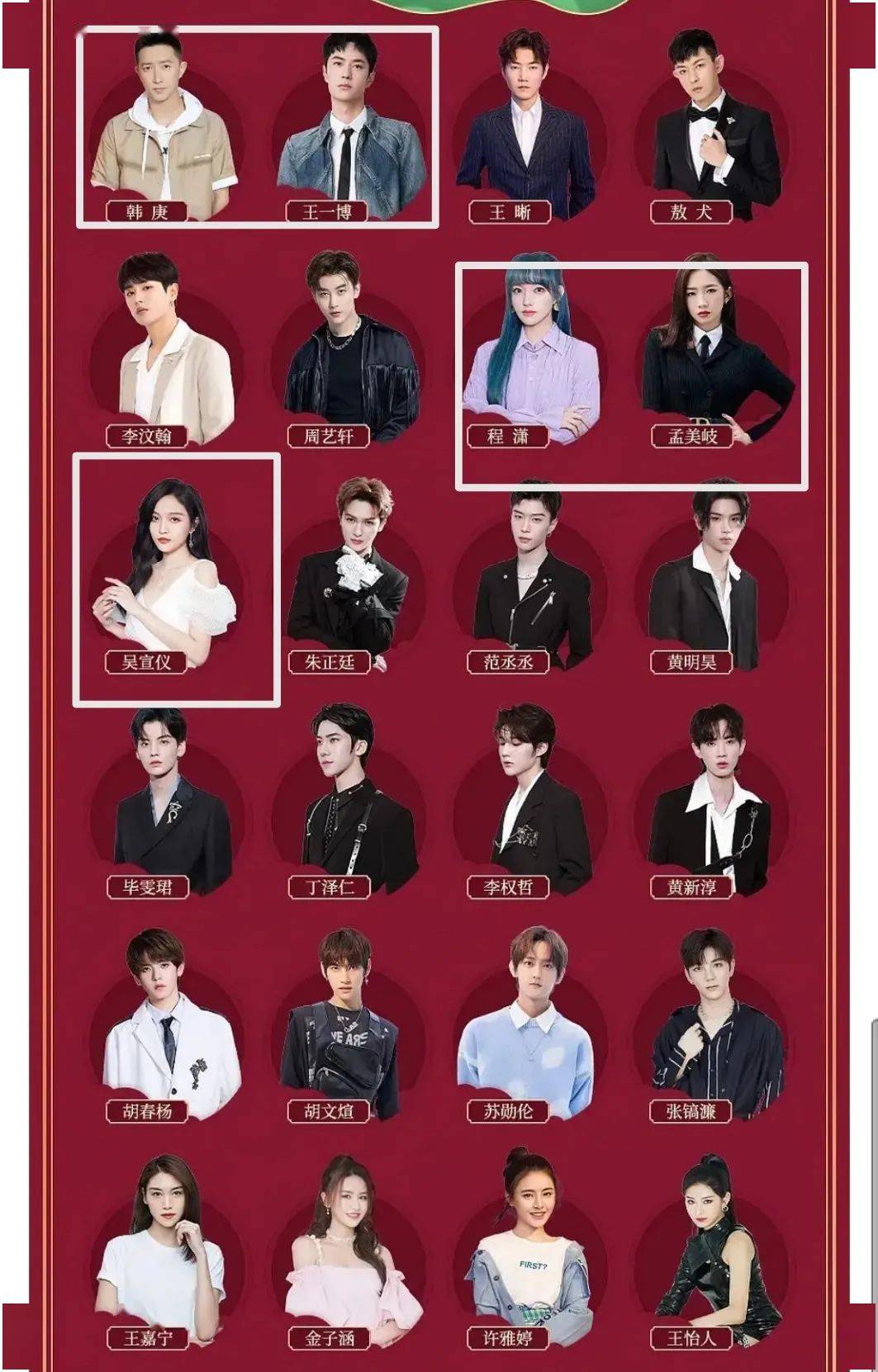 乐华公司最新的番位名单出来了,目前除了韩庚第一位后就是王一博了,而程潇孟美岐吴宣仪的甚至在李汶翰跟周艺轩之后了。