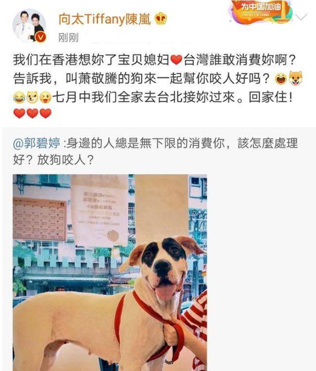 向太对于郭碧婷的宠爱程度比向佐还要深,在夫家人一个都不在其身边的情况下,向太最喜欢在网上声援媳妇,甚至称要放萧敬腾的狗来咬消费她的人。