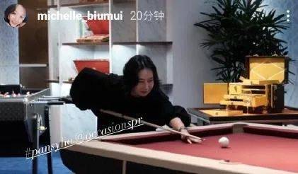 期间何超琼还兴致大发打起了台球,动作纯熟气场全开。