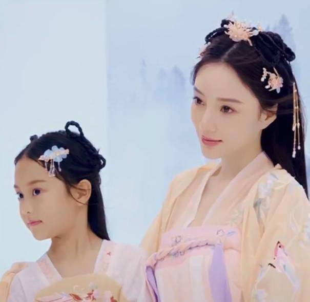 视频中,李小璐以古装造型亮相,一袭粉色长袍仙气飘飘,皮肤光滑白皙,淡雅的妆容十分显气质,状态很不错。甜馨穿着和妈妈同款服饰,编发造型很是可爱,母女颜值都非常出众。