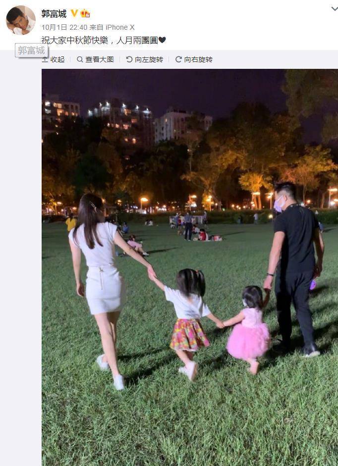 10月1日中秋佳节,天王郭富城罕见地晒出了家庭合影,配文称:“祝大家中秋节快乐,人月两团圆。”