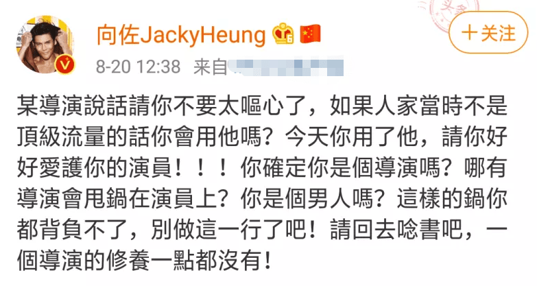 当时就连演员向佐也忍不住发声diss滕华涛:“你确定你是个导演吗?”、“哪有导演会甩锅在演员身上?”