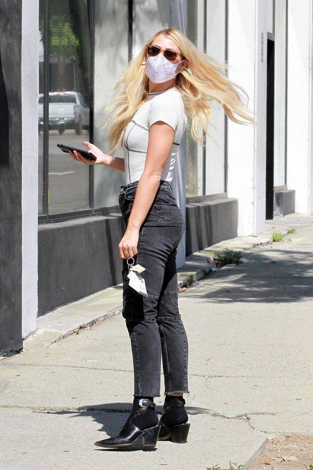 女星艾玛·斯莱特(Emma Slater)穿着黑牛仔裤配白半袖,现身洛杉矶街头。