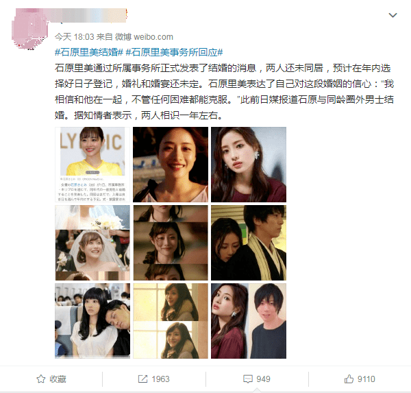 10月1号这一天,石原里美通过自己的所属事务所发表了一个声明,称将会在今年选择一个好日子结婚!此消息一出,不仅仅惊呆了所有的日本粉丝,就连国内的粉丝都被震惊了,虽然石原里美今年已经33岁了,是该到结婚的年龄了,但大家还是没想到,这一天会来的这么突然。