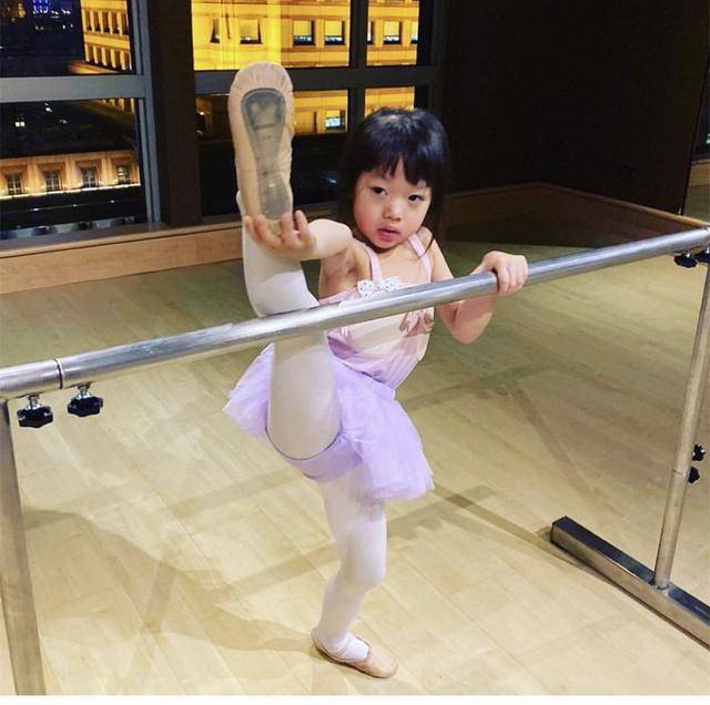 而小女儿QQ对跳舞也很有兴趣,身体的柔韧性非常好: