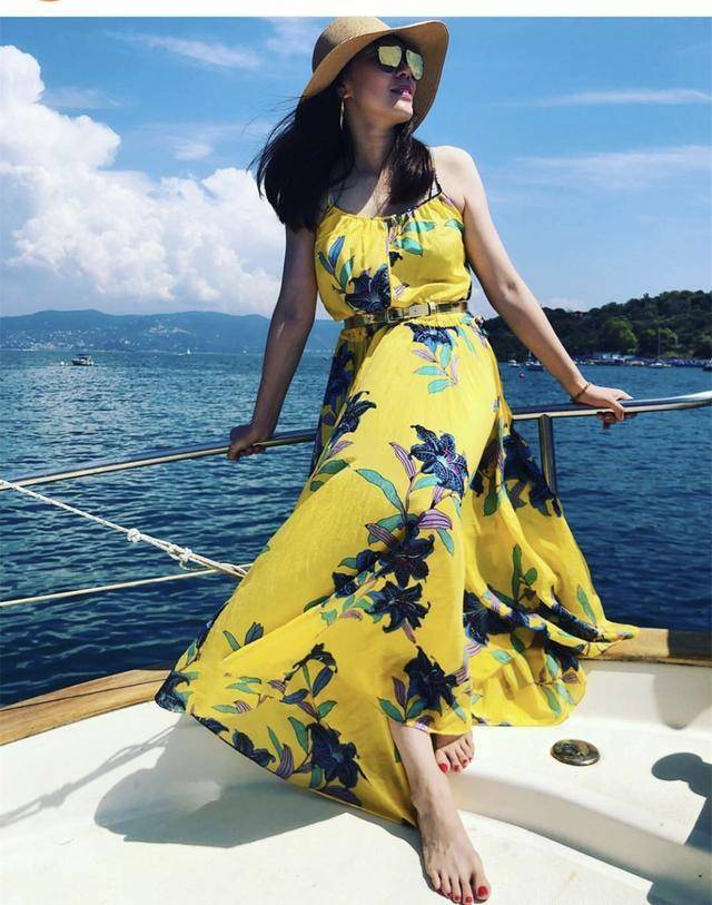 一家人都是出游的装束,尤其是曾馨莹的编织帽和连衣裙,很有外出野餐的感觉。