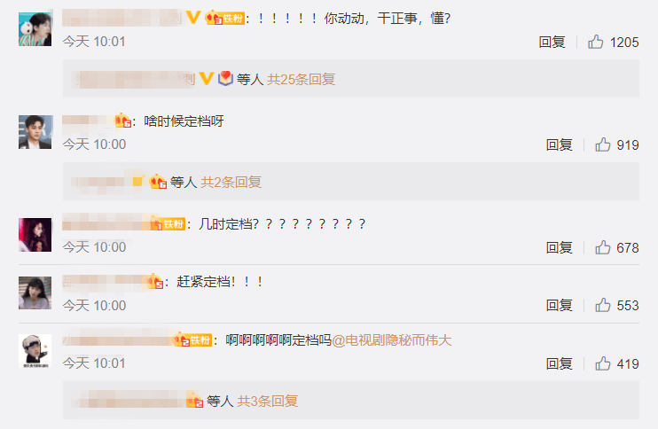 其实按理来说,电视剧官博在节日期间发文宣传剧集,于情于理都并无不妥,不过,从官博底下网友的评论来看,大部分声音都在催促剧集尽快定档不说,包括语气也是相当不善,似乎在网友看来,已经无法忍受官博一直拖延定档的事情了。