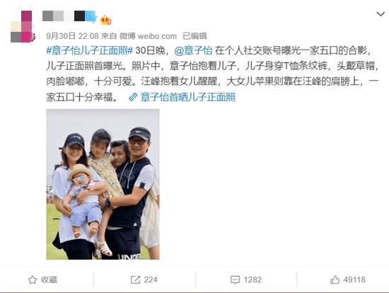 30号,章子怡也在网上分享了一段小视频,其中有一家五口的合影,儿子是第一次正面形象出镜。看着一家五口的合影,网友有感慨汪峰的基因强大:三个同父异母的孩子,简直就像是共用一张脸。有人还调侃:连章子怡都开始像汪峰,章子怡的儿子和女儿以及汪峰的大女儿,脸型几乎是一模一样的圆脸。虽然不是一个妈,三个孩子一看都是亲姐弟。