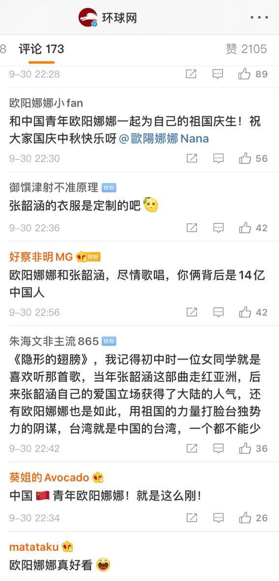 他们得知中国台湾艺人欧阳娜娜和张韶涵要出现在央视国庆晚会上,甚至还要演唱《我的祖国》等歌曲后,在公众平台上喊话她们,表示这样的行为会受到处罚,甚至会罚款五十万。还大放厥词,称艺人不应该伤害台湾民众的情感。虽然这样的举动并没有得到太多人的支持,但如果欧阳娜娜和张韶涵真的受到了处罚,或者在台湾会受到什么不公平的待遇,情况也是蛮严重的。
