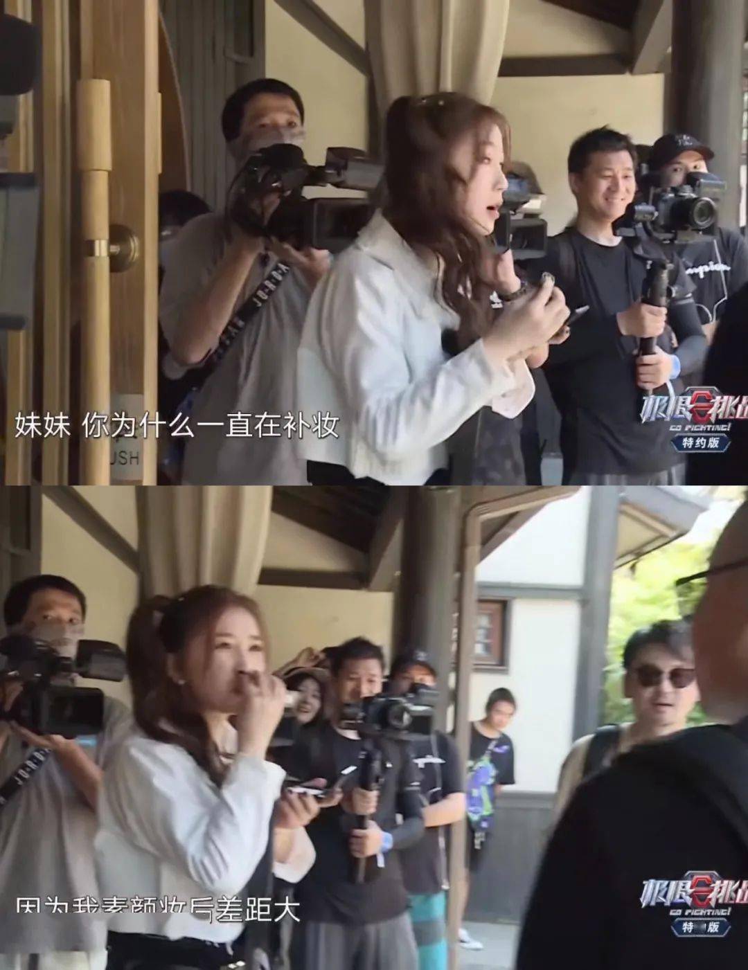 之前在《极限挑战》中,哥哥们问她为什么补妆的时候,她说自己素颜妆前妆后差距大。