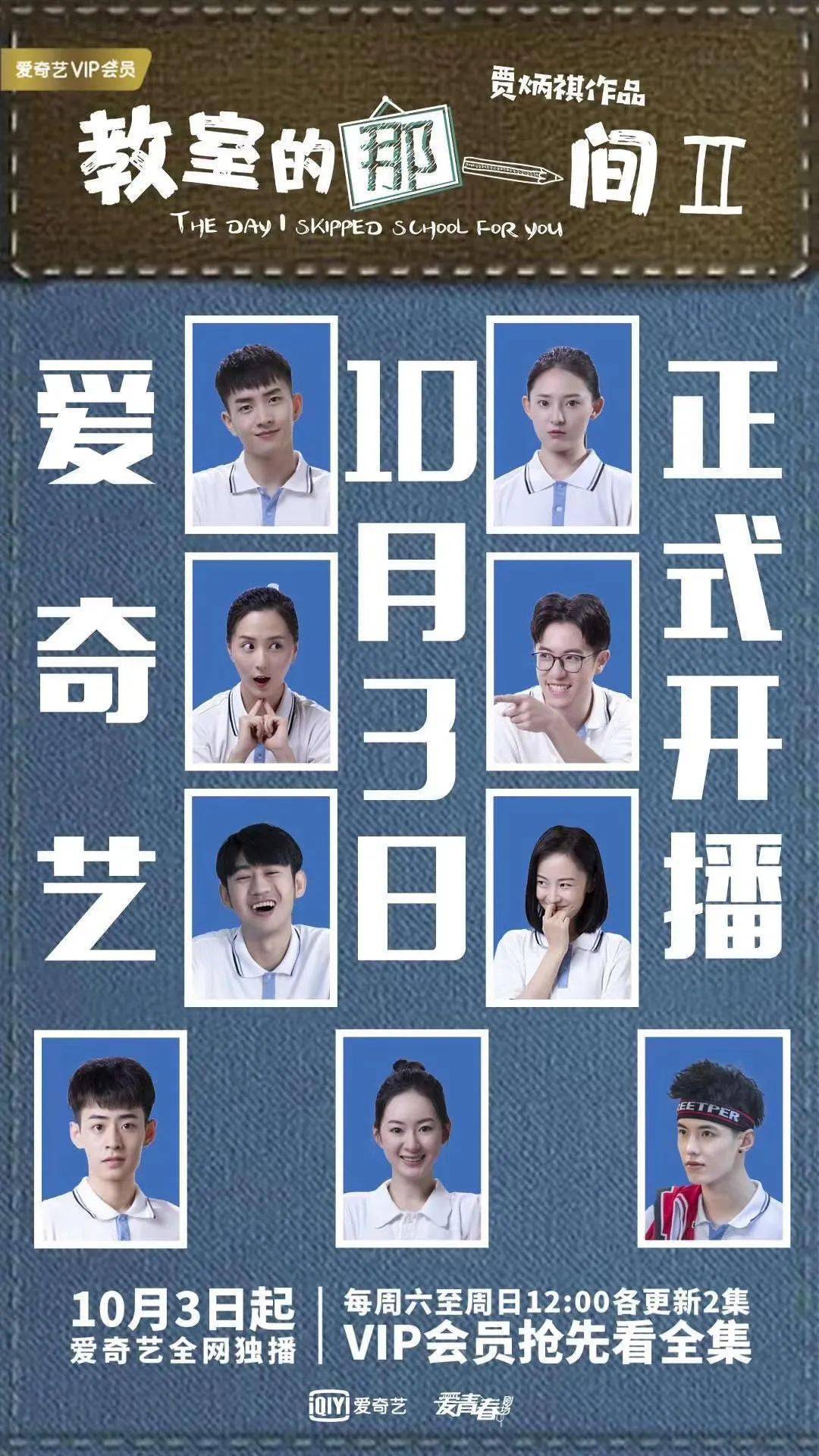 由贾炳祺执导,钟承霖担任制片人的青春校园成长喜剧《教室的那一间2》定档10月3日在爱奇艺平台全网独播。《教室的那一间2》延续第一季的真实和逗趣,讲述经历了高二文理分班,陈末和他的一帮好友又幸运地重聚高二三班文科班,展开新的故事。