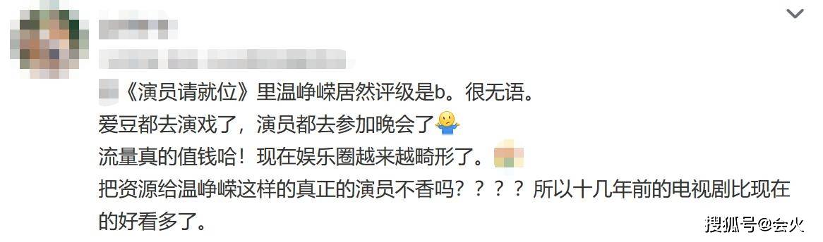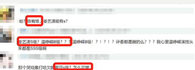 温峥嵘在演艺事业上有如此佳绩却被评为最差级别,有网友列出了参加《演员请就位》的其他选手与温峥嵘做对比,其中陈宥维、娄艺潇、张月等新人演员被评为S级,引起网友不满。