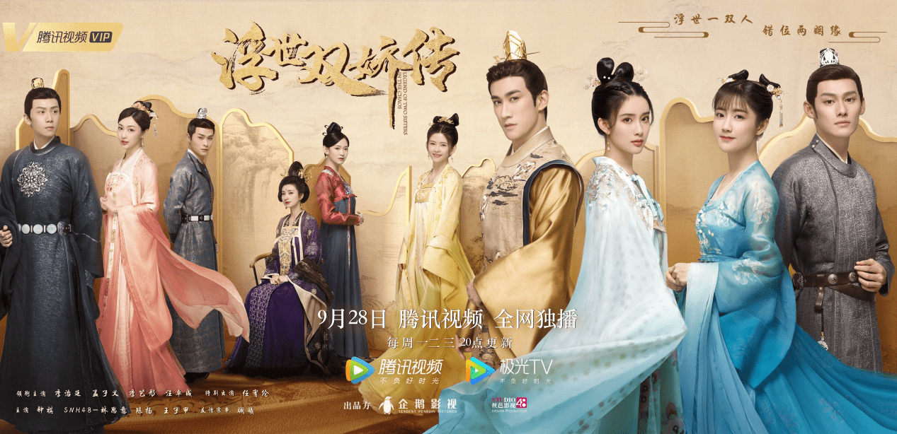 《浮世双娇传》讲述了因一首“符女帝后”童谣被推上风口浪尖的符氏姐妹符玉盏、符金盏,与皇子薛荣、游侠江绍在错位婚姻与朝堂斗争中,坚守感情共创盛世的故事。四人的关系线错综复杂,但情感双箭头又十分明显。错嫁梗虽然狗血但永不过时,常看常新。