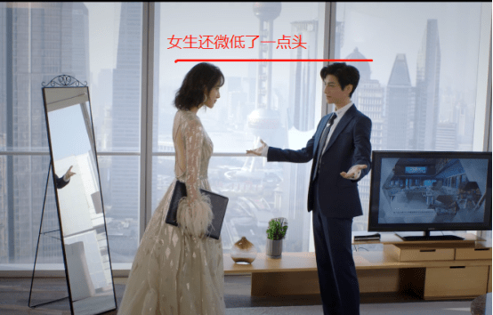 若说剧中是导演运镜的原因导致,那么脱离正式镜头,让人可思考的地方也不少,在一场花絮里面显示两人穿的都是拖鞋,男女主的身高对比大家可以自己品一品。