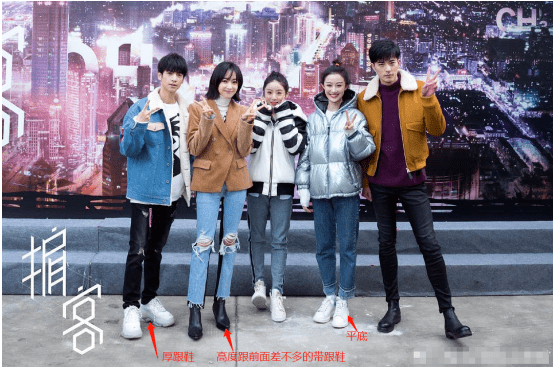 里面有一个女演员跟他演的是同公司搭档,他和女演员同时都穿了带跟的鞋,然后两人身高竟是齐平的??