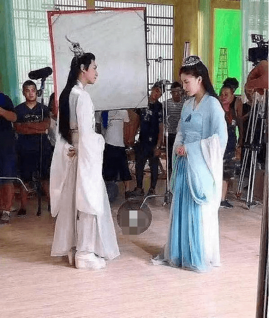 在近期杀青的《皓衣行》中,对他的身高讨论就更多了。与《皓衣行》同剧组女演员同框时,脚踩恨天高鞋的他跟女演员的身高对比是这样的