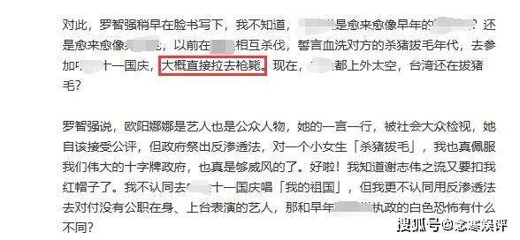 更可恶的是,有不少天天在网上打嘴炮的敌对专家,拿着打战的一套,强行把罪名扣在欧阳娜娜的头上,说她去参加国庆晚会,完全可以直接拉出去枪毙。