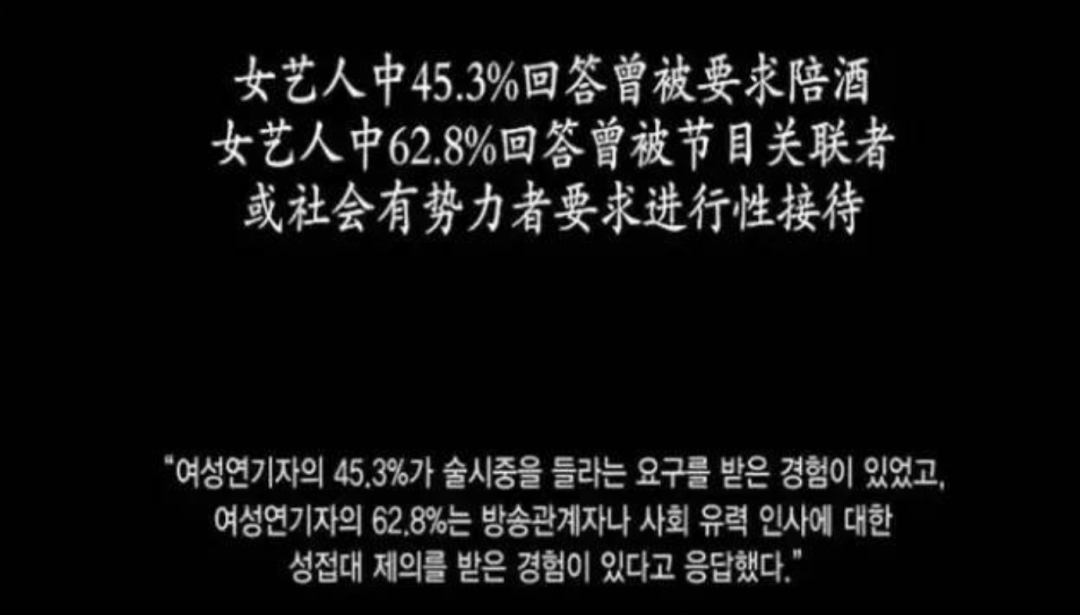据韩国的一份数据报告显示,近半的女艺人都曾被要求过“潜规则”。