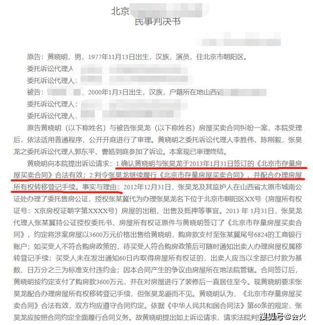 其实此事中黄晓明完全是受害者的身份。2013年,黄晓明与卖方签订合同,但由于房子的主人张某龙当时年仅13岁,还未成年,张某龙的父母便委托张某冀代为办理,购房款支付的账户也是委托人张某冀的。
