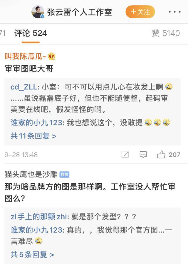所以说,产品官方的选图着实令人惊讶。对于这一点,粉丝也是无话可说,毕竟是真的。所以在张云雷工作室的微博评论中,我们也能够看到,他的粉丝们让工作室以后可以审审图,而不是不管什么照片都可以发出来。