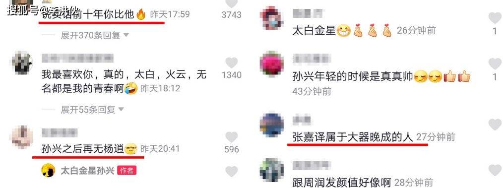 在视频评论处,一部分网友表达出自己对孙兴的喜欢,另一些则表示张嘉益是大器晚成,确实是三十年河东,三十年河西啊,今时不同往日。