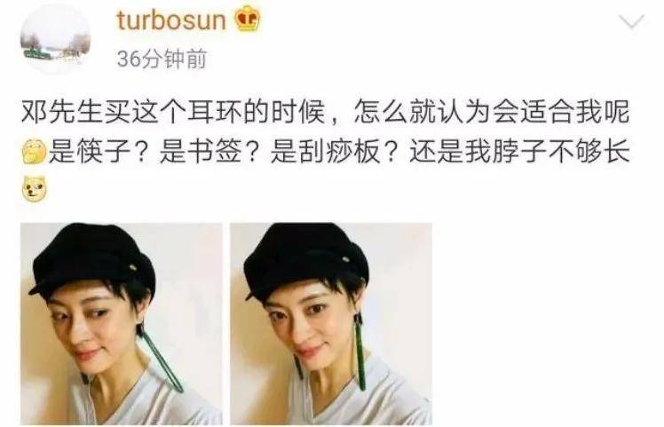 例如孙俪会爆料邓超送给自己的神奇耳环,形状诡异,吐槽是不是自己脖子不够长