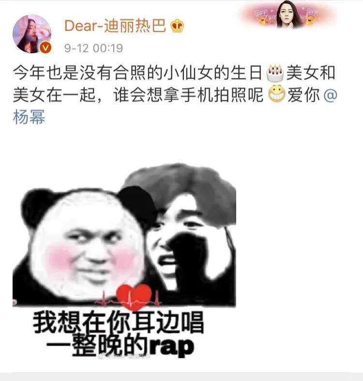 同样是杨幂生日当天,还发生了一件乌龙事件,迪丽热巴在给杨幂庆生的微博里用了一张熊猫头表情包