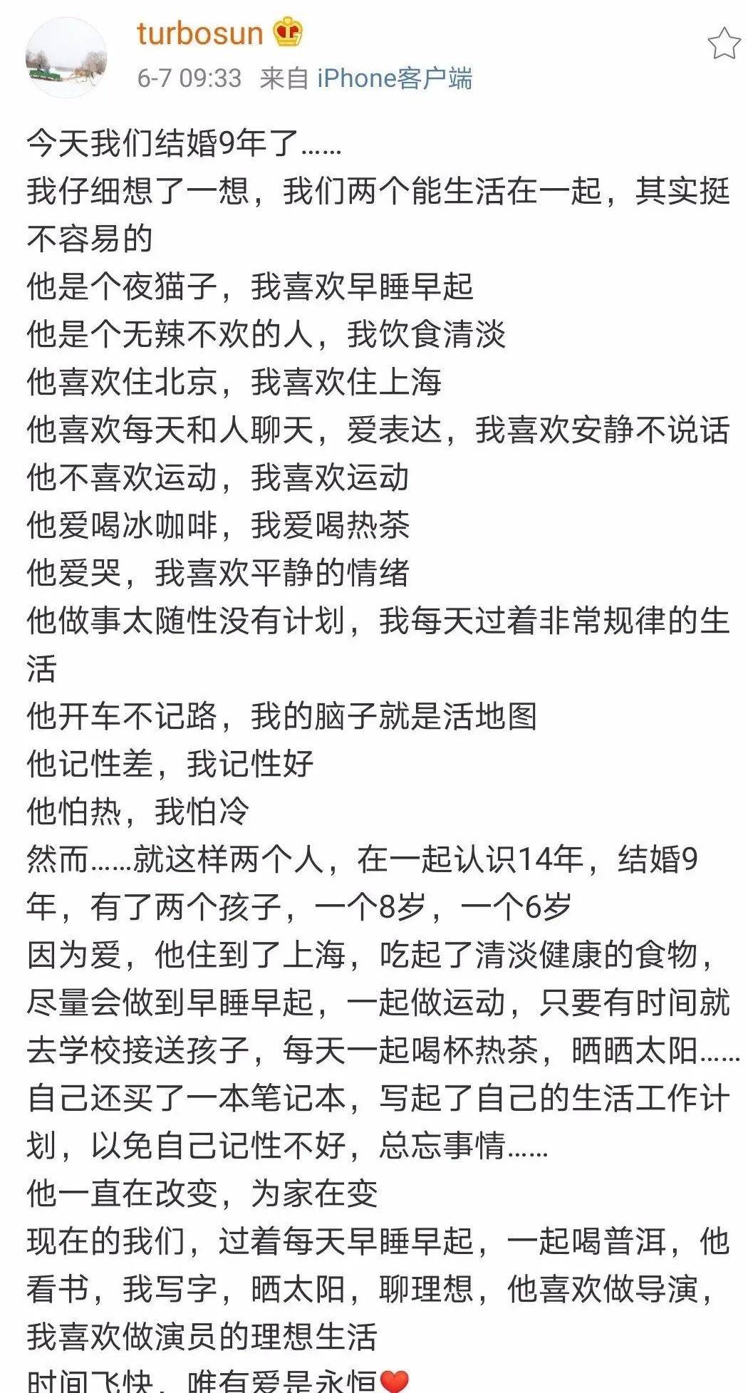 两个人会错开档期陪孩子、会做为对方挤上牙膏等等的简单但温暖的小细节,今年9周年纪念日的时候孙俪发了长文,让拆妹很是感慨。
