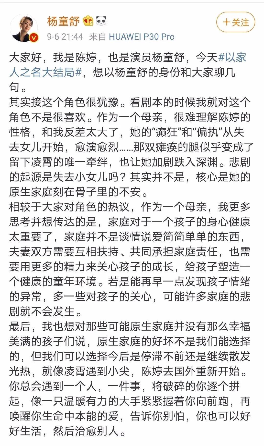前一段时间《以家人之名》里关于原生家庭的问题引起众多的争议和讨论。其中让人气得不行的“陈婷”扮演者杨舒童老师发文