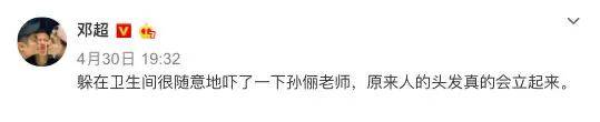 还躲在厕所里吓孙俪,然后惊奇地发现人的头发真的会竖起来。