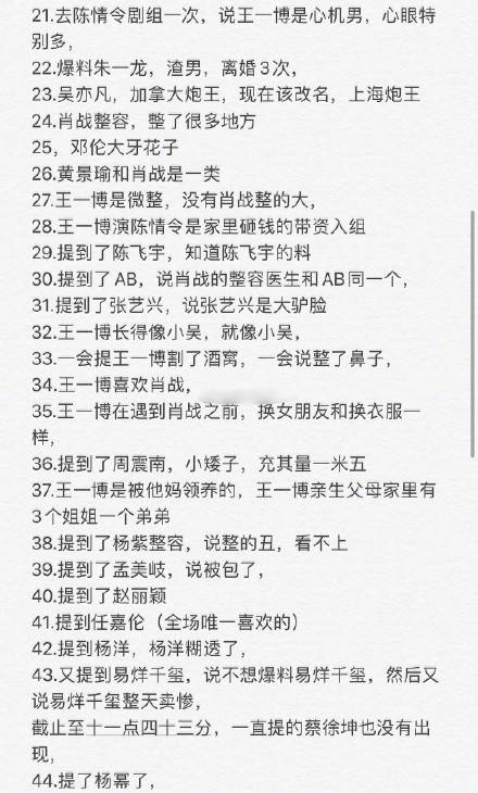 说肖战改过年纪,粉丝里面有内鬼,还是被王一博妈妈收买的;说自己和三小只关系很好;曝料朱一龙渣男,杨紫整容等等,感觉业内有点流量的艺人,全部都出现在他的直播中,唯独之前被他放出“聊天记录”的蔡徐坤是个例外。