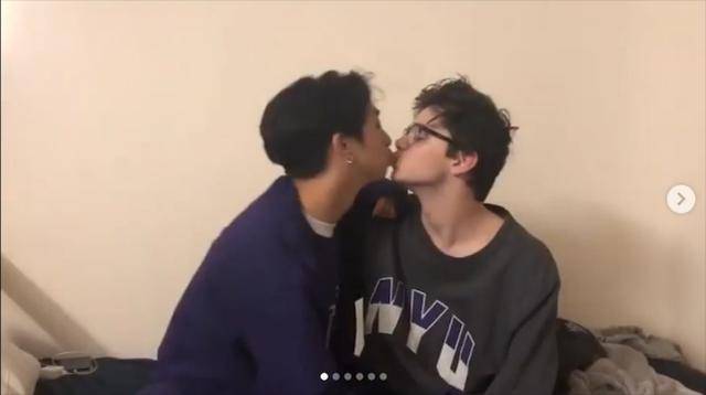 接吻中有男生,也有女生,无一例外都是嘴对嘴式的接吻,妥妥的秀恩爱标准动作。比较让人疑惑的是,国外这么放得开吗?